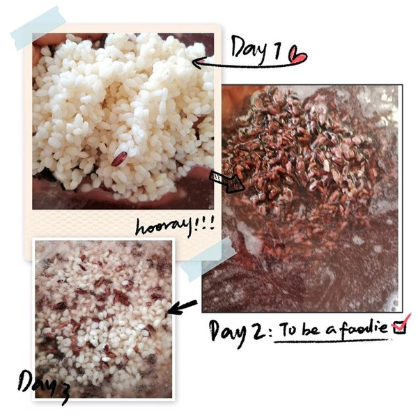白糯米、紫糯米分别淘洗干净,泡在清水里4个小时(我是早上泡的米,下午开始包的),两种米分着包,混在一起包都可以,随自己的喜好