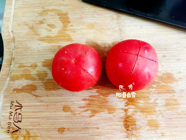 西红柿洗干净,划十字花刀