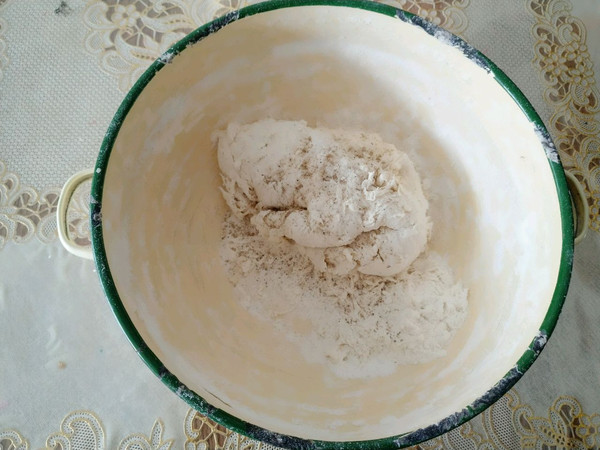 面粉加糖、酵母,用温水和面,加入椒盐。