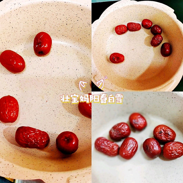 把枣放进平底锅,小火翻炒,表面微微发黑,大概2-3 分钟时间