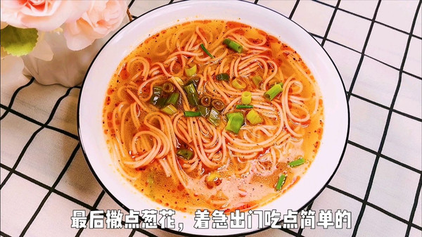 一碗好吃的面条就做好了,超级简单方便,如果你赶时间话,这碗面条在你一边穿衣服化妆的时候,一边就能搞定,分分钟吃到肚子里啦哈哈!