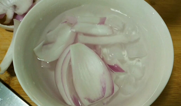 把洋葱和木耳放在一起,倒入料汁,搅拌均匀