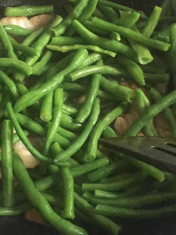 豆角之前先炒一下水,这样豆角好吃 放入豆角翻炒