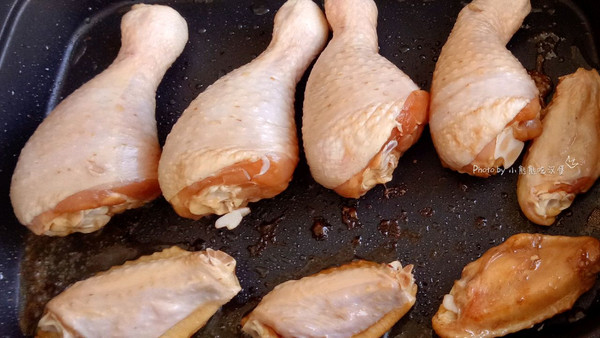 鸡腿清洗的时候沿着骨头挤压出血水,反正面拿竹签扎满小眼(竹签比牙签粗更合适一些)
