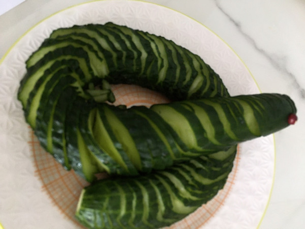 切完装盘中倒入适量盐咸一下后,把水沥干备用,