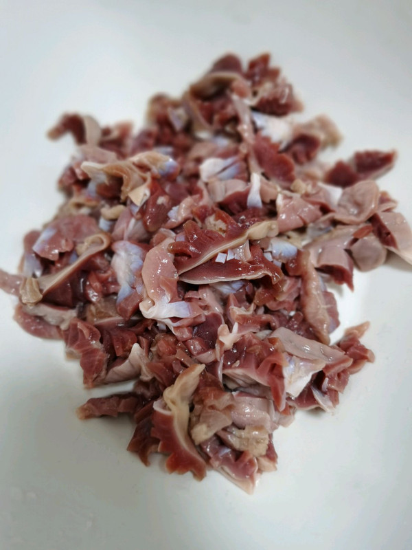 放入葱姜蒜炒香鸡杂放进去,一起大火爆炒