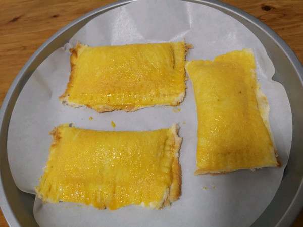 面包片切掉边角,擀开,加熬好的苹果丁。