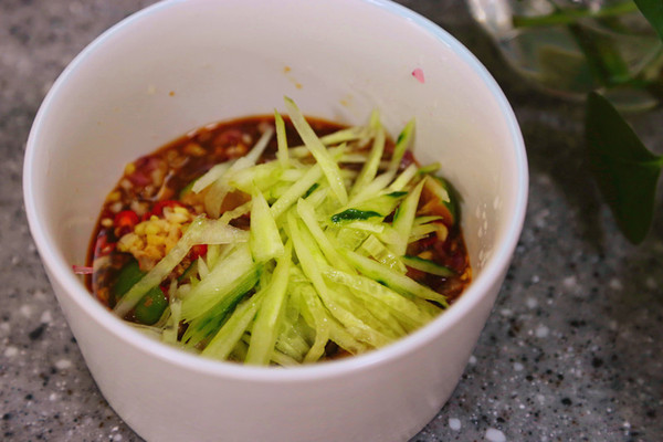 弄好以后腌制大概二十来分钟 有时间的话可以冰箱里放放 夏天嘛冰冰凉凉更容易入口 吃起来口感也更赞