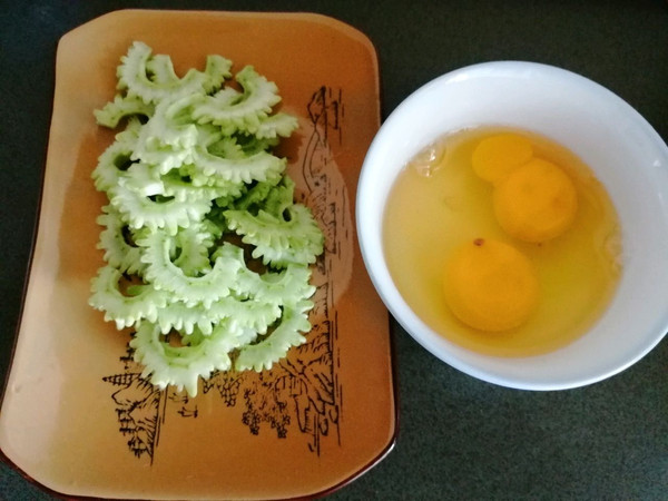 鸡蛋打入碗搅散,苦瓜去内瓤切薄片