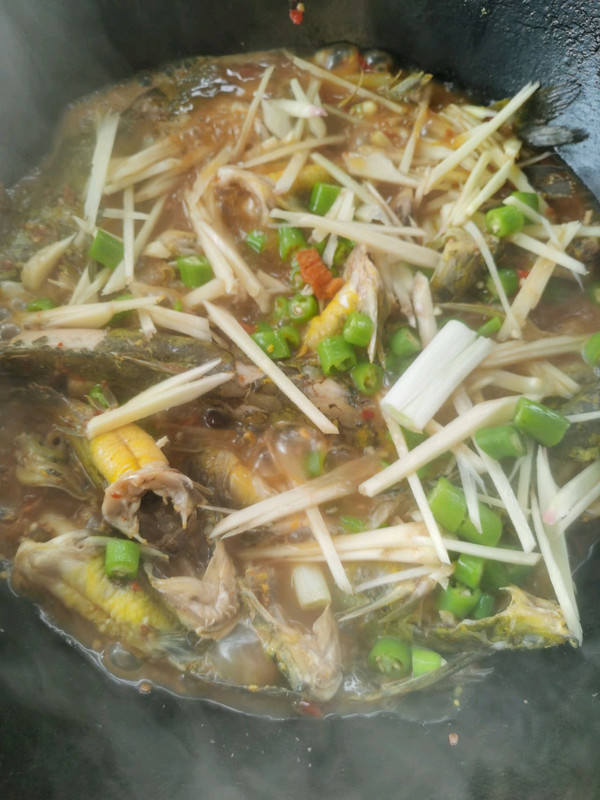 撒上仔姜丝和二荆条,淋一点点陈醋,捞出装盘。