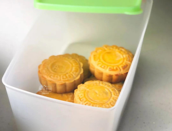 刚出炉的月饼表皮较干,待冷却后,用盒子密封保存2-3天;