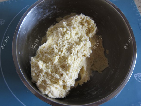 备齐主要食材。计量好500克面粉,加上酵母粉混合好水,搅拌面粉成雪花状。把面团揉光滑保鲜膜覆盖大约2个小时左右发酵好了。