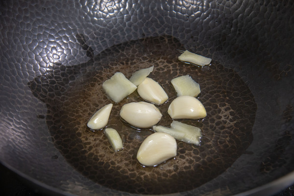锅里放入食用油,油热后放入蒜和姜,翻炒出香味。