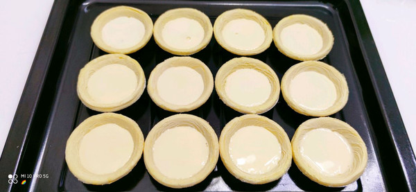 把蛋塔液倒入塔皮内。