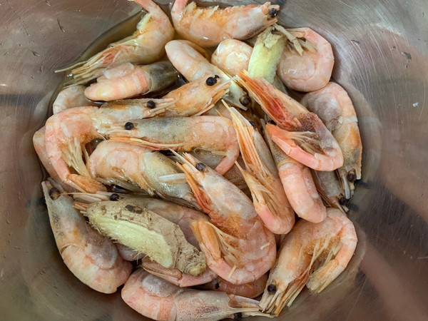 将大虾用姜片和料酒泡二十分钟