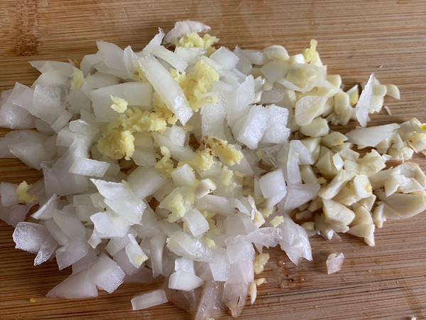 洋葱、姜和蒜切末备用