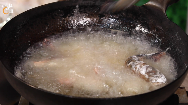 6.锅里少许油下入大蒜爆香,然后下入大虾,放入调好的汁