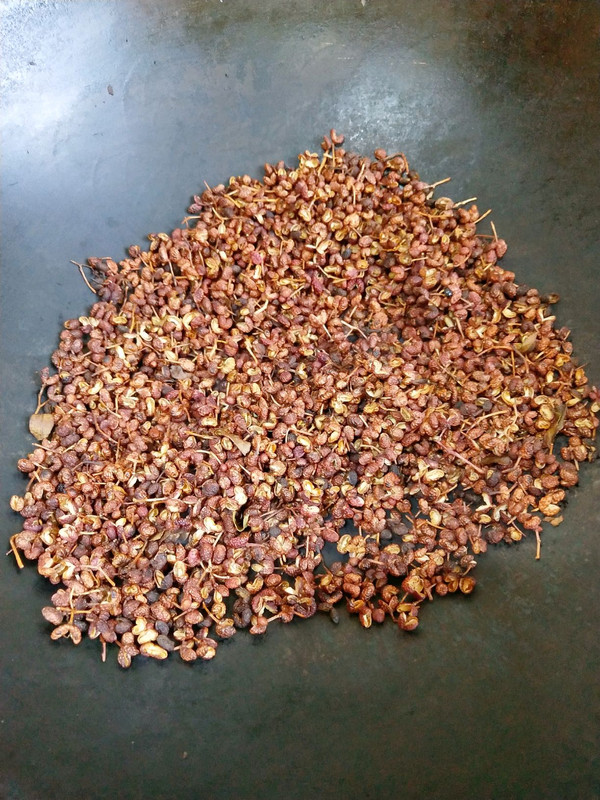 炒个5—8分钟之后,能闻到独特的花椒香味,整个屋子都是花椒香味。 可以盛出放凉备用。