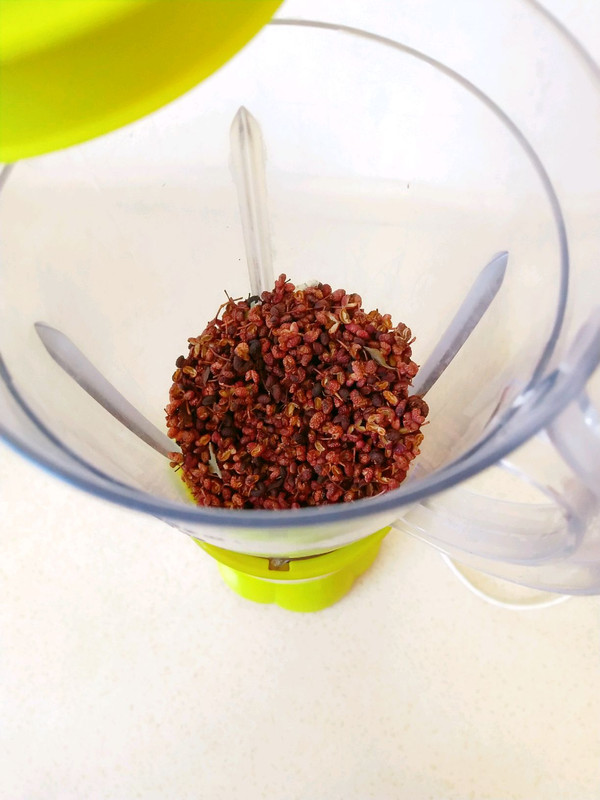 花椒一定要放凉,然后用料理机打碎。我用的是简单的榨汁机。