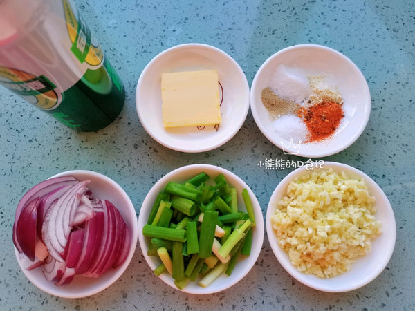 300ml啤酒(啤酒用量没过食材就可以),汤汁收到一半的时候加入所有调味,翻炒均匀收干即可。