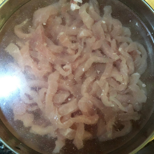 洗净的肉丝加入 适量盐 淀粉 食用油 生抽 腌制2~3个小时 放冰箱冷藏