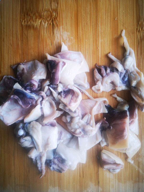 墨鱼肉切成小块。