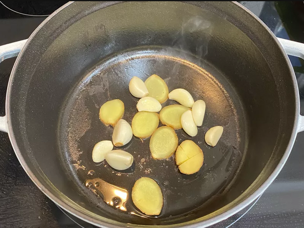 热锅,倒入适量油,放入生姜片和蒜爆香