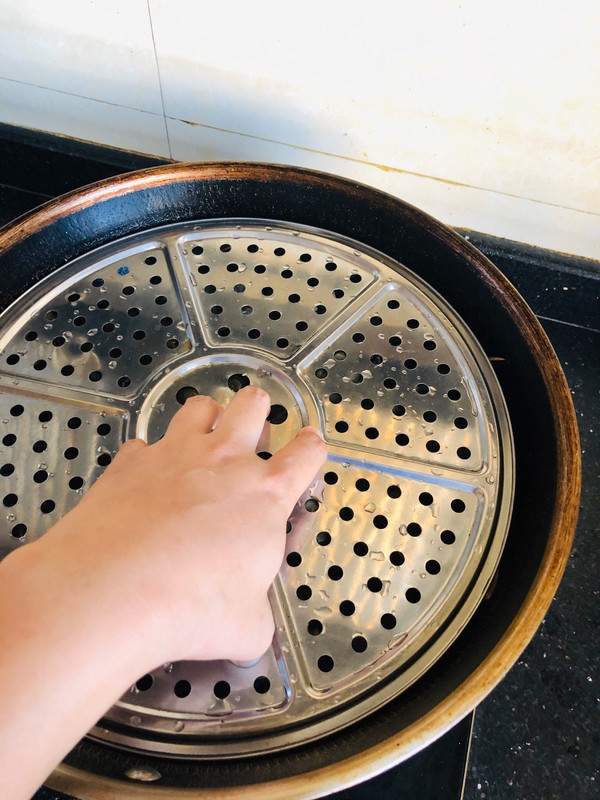 随便拿个盖子,能放完大闸蟹后,不能乱动的,以免锅热,大闸蟹乱串,腿就会断完,就不可爱了……这样压着放大闸蟹的时候,也不会乱跑,一个个放进锅后,压紧,开火