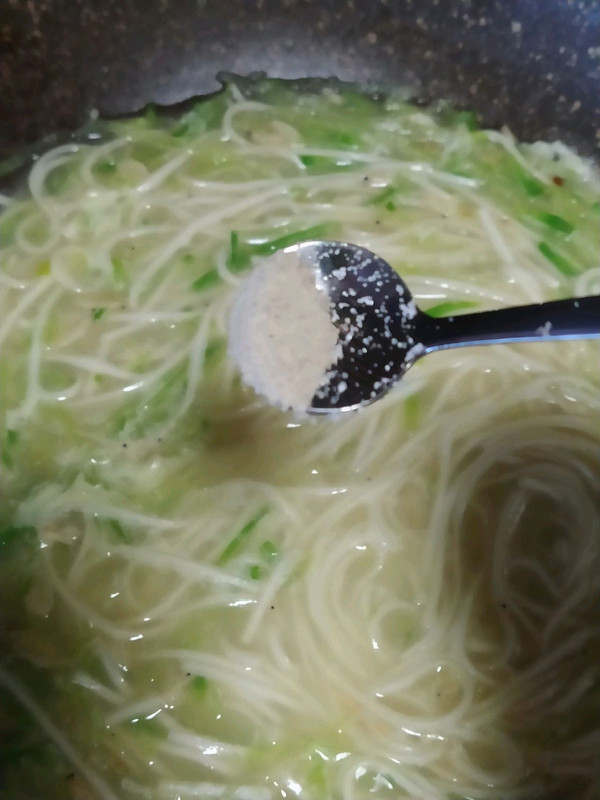 开胃又通气的萝卜丝面条汤就做好了。特别适合这个秋冬季节食用,不仅可以通气还可以开胃,可以有效缓解感冒的初期症状。