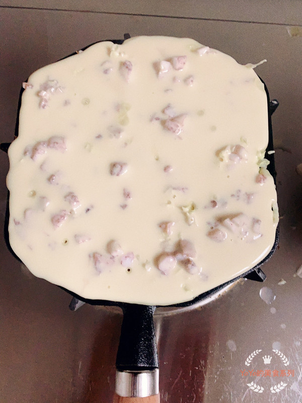 2、再加入牛奶搅拌均匀;自己家做,加牛奶更香