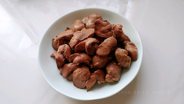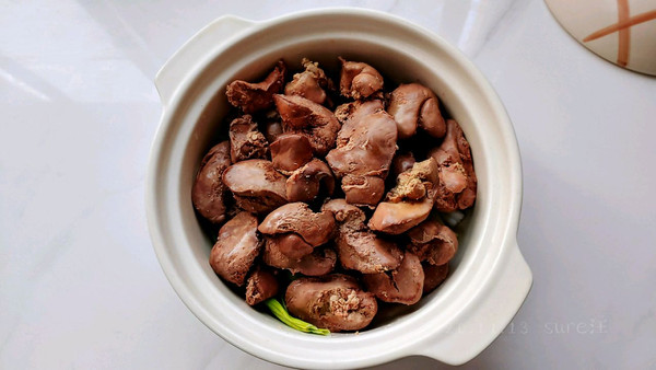先把鸡肝扔到加酒/葱姜凉水锅里煮开煮变色,关火滤水洗干净