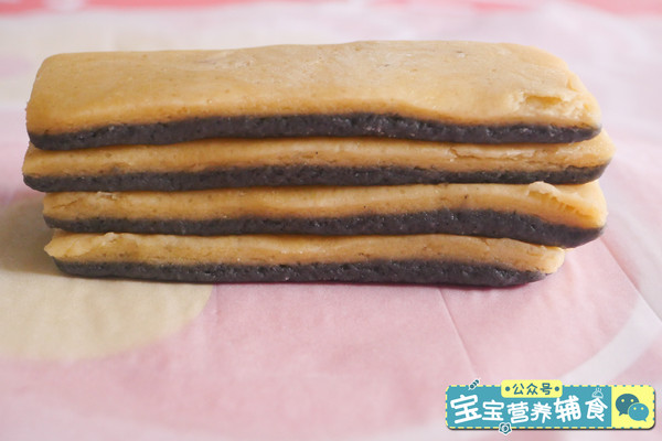 黑色的面团跟白色的面团一样的操作哦!黑芝麻发糕粉30克、黄油8克、白糖3克、奶粉8克、清水10克,和到一起,就获得黑色的面团了。