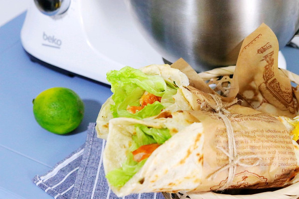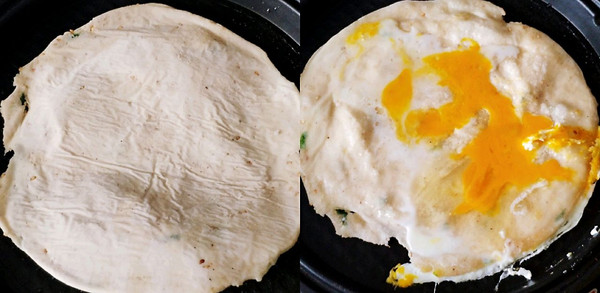 面饼坯可以多做一些,然后用油纸间隔开,放在冰箱里,吃的时候拿出来用平底锅煎一下就可以了。