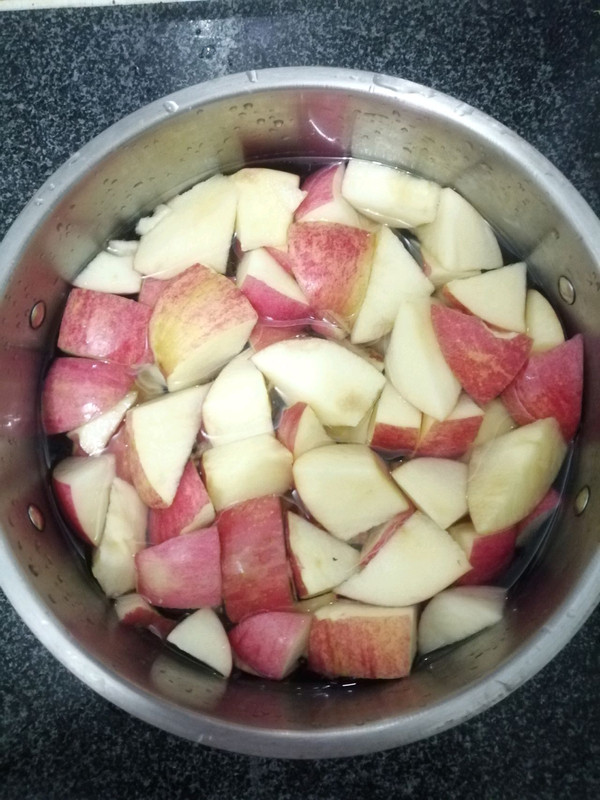 苹果切小块,放入锅内加水。