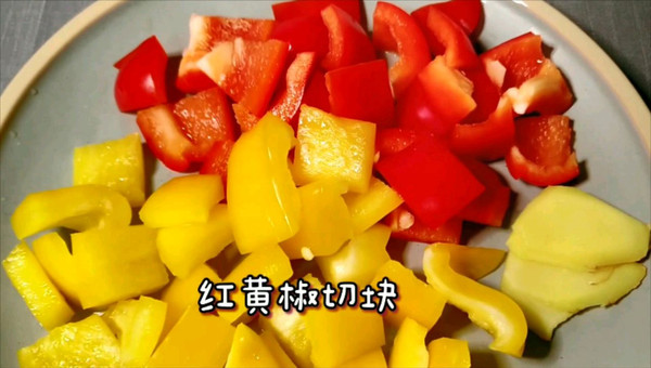 牛肉粒中依次放红酒30ml、生抽半勺、淀粉少许抓匀(腌制10分钟)