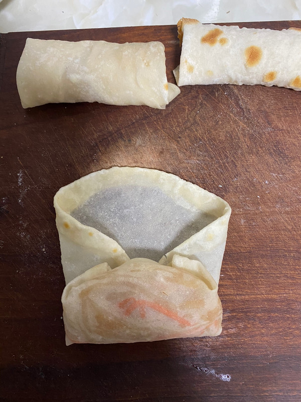 平底锅放油,放入面皮,至面皮两面颜色变成乳白色即可出锅,这样面皮会很软;