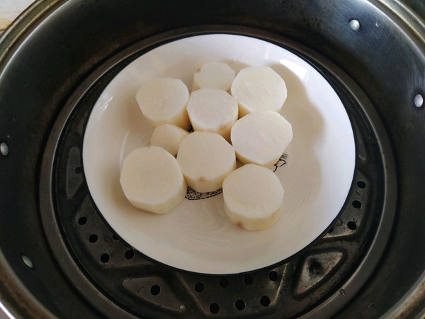 蒸好的山药,用筷子可以轻松扎透就是蒸好了。