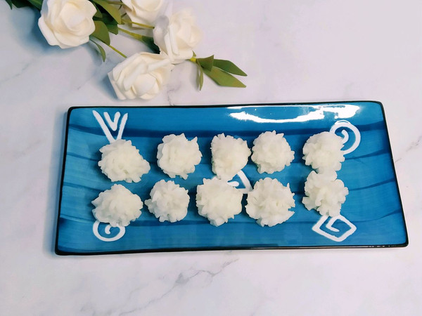将碾碎的山药泥装入裱花袋中,裱花嘴可以选择自己喜欢的形状。