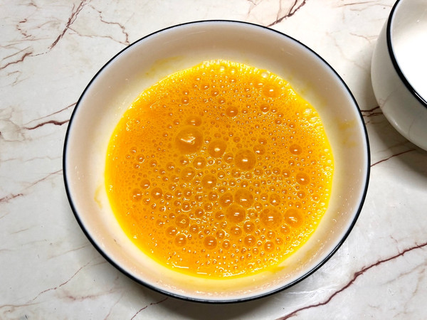 倒入虾仁鸡蛋液,底部凝固时用筷子搅拌滑散