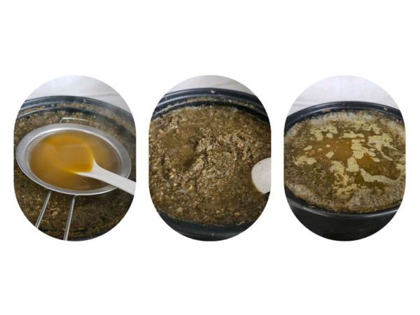 过滤后的渣渣同样加开水搅拌煮开后再过滤,这道工序流程可以来个重复使用1至2次。