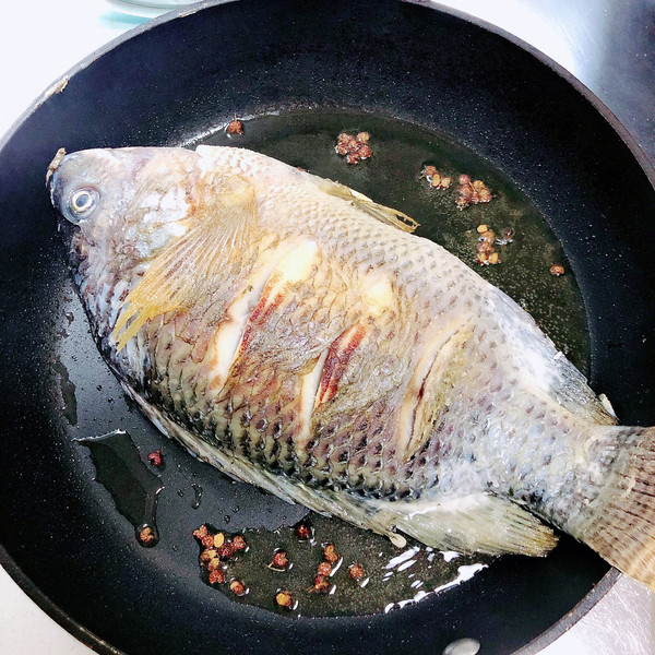 锅中倒入油,加热至五成热,放入鱼煎至焦黄。
