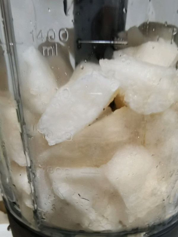 梨切块,破壁机打成泥。下单买原汁机了,滤渣会省心一点。