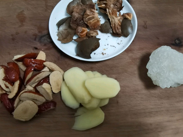 10个梨打了两次,很大一炖锅,把红枣,罗汉果,姜片放进去。