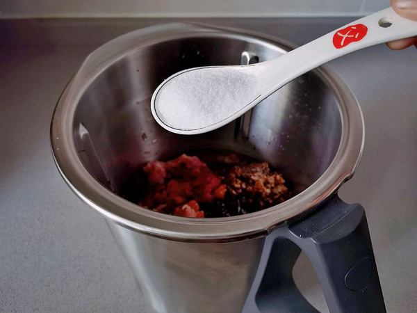 ➕豆瓣酱,设置时间5分钟,140度/1档(反转)煸炒食材