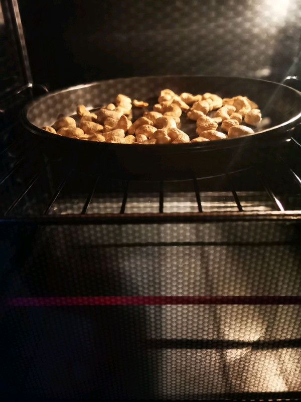 腰果脆脆才好吃。腰果仁烤箱烤一下,我用上下150℃烤了3分钟,自己家烤箱亲们自己掌握哈,反正别糊了就行,出炉热着的时候柔的,不要紧,晾凉就脆了,备用。