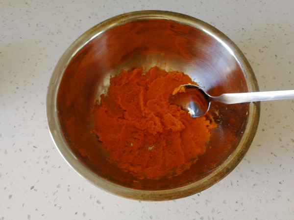 蒸熟的红薯用勺子磙成泥。