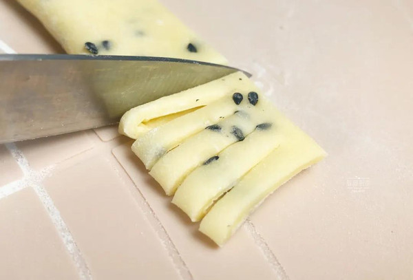 先切4刀,不要切到头部,第5刀的时候切断(每5刀为1个,重复这个操作直到切完所有的面片);