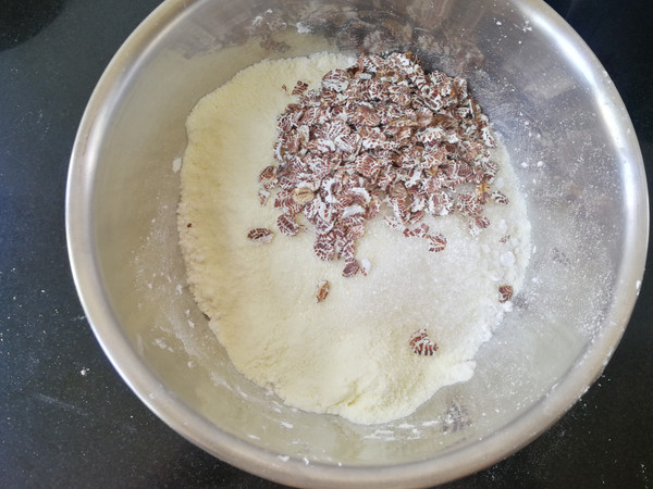 在低筋面粉里加进25克的羊奶粉,泡打粉,盐,砂糖