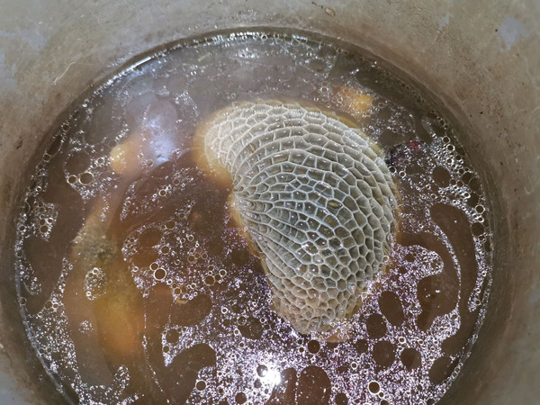 我们先来处理金钱肚。新鲜的金钱肚放入清水中泡30分钟,然后搓洗