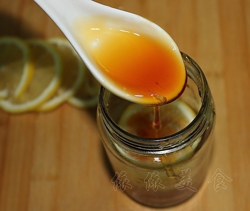 每放一片柠檬片,就加入一勺蜂蜜: